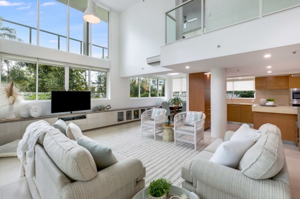 Upstairs, marvel at the height and openness the mezzanine level creates overlooking the huge living area with views out towards Mackay's beautiful blue river and river walk.