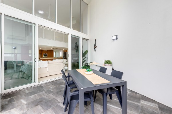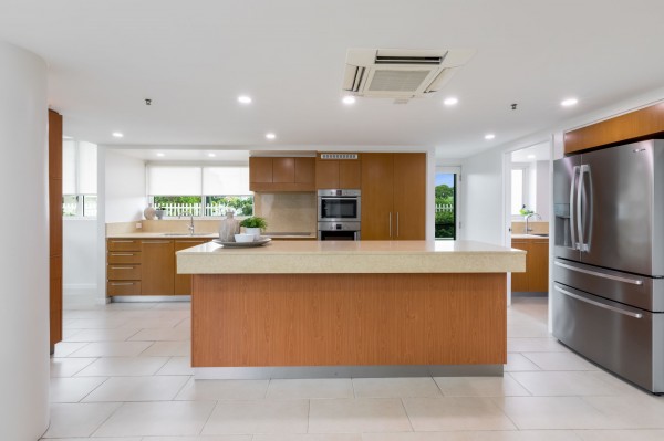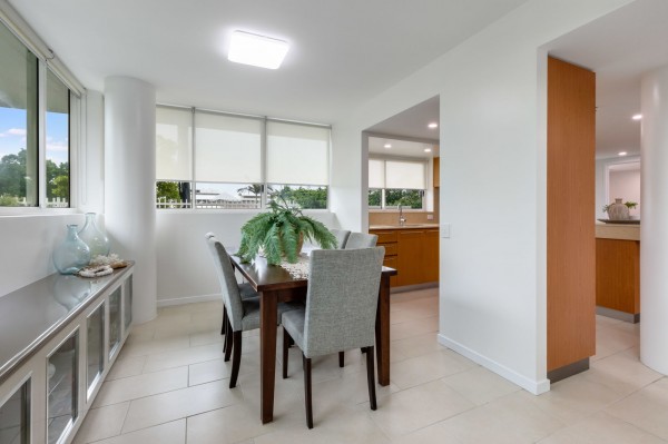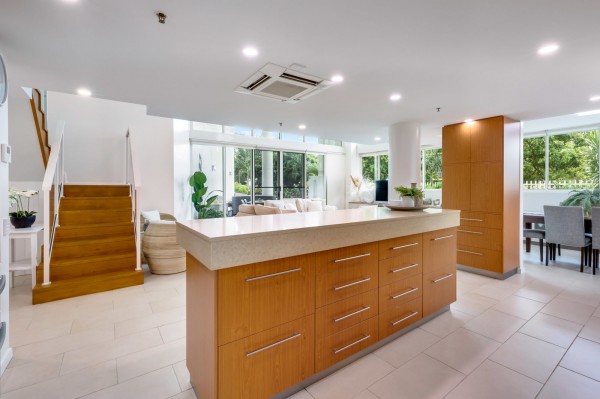 The huge open dining, lounge and sitting area are big enough for all the family to enjoy. There is a stunning 7meter custom-made built-in cabinet with display area. The lounge area can hold the biggest of lounges and leads outside through wide opening double glass doors to the undercover entertainment area and around the 3 sides of the apartment for those summer bbq parties. Enjoy your raised garden with established low care tropical plants.