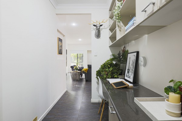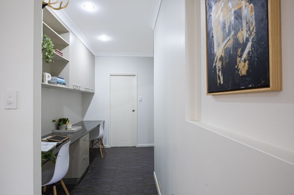 - Designated office area with custom built in double desk