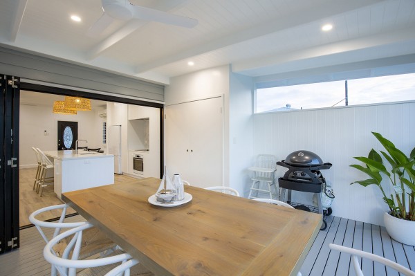 - 4 bedrooms with fans, window furnishings, polished floorboards and traditional tongue and groove walls