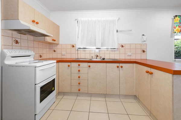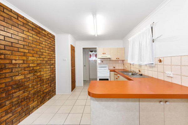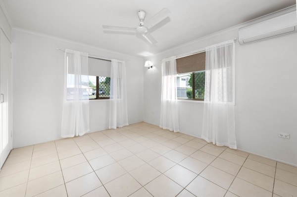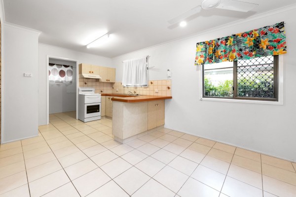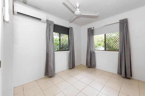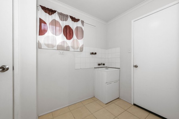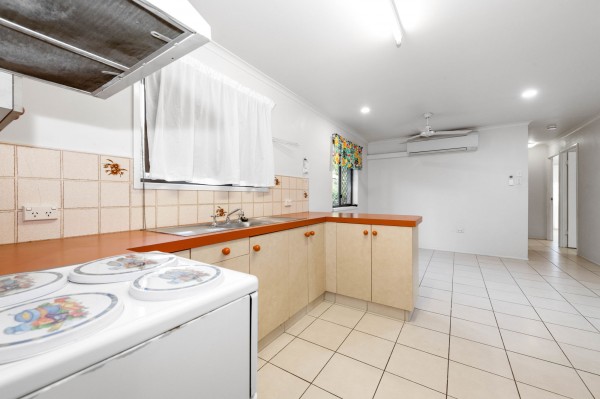 All three bedrooms have fans, built-in wardrobes and air-conditioners, while the bathroom has a separate toilet. The laundry runs off the kitchen and leads through the back door to the clothes line.