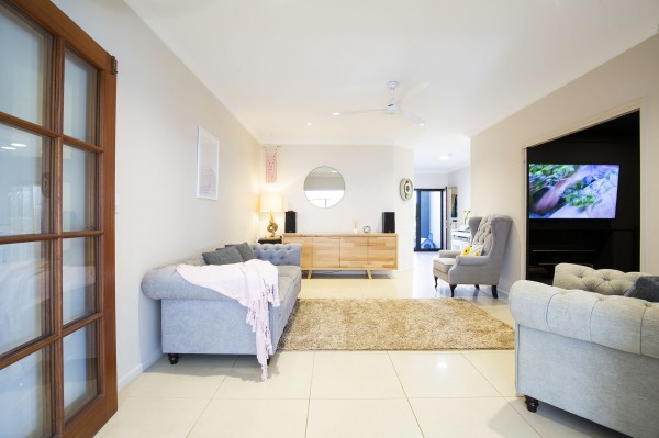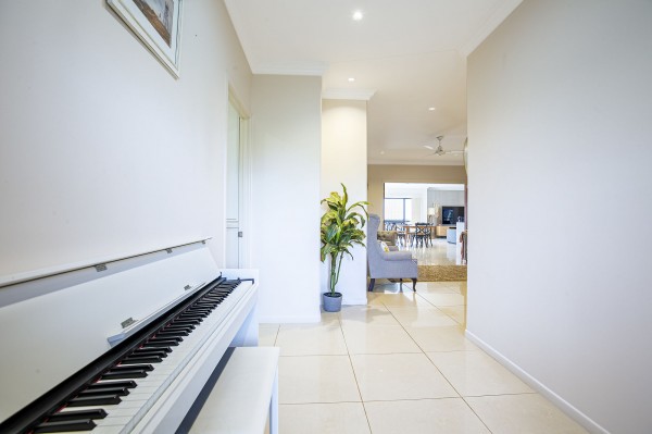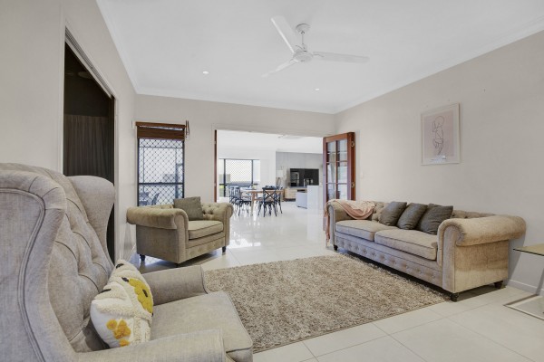 - Multiple living areas include a large formal living room that can be closed off, open plan living area and theatre room