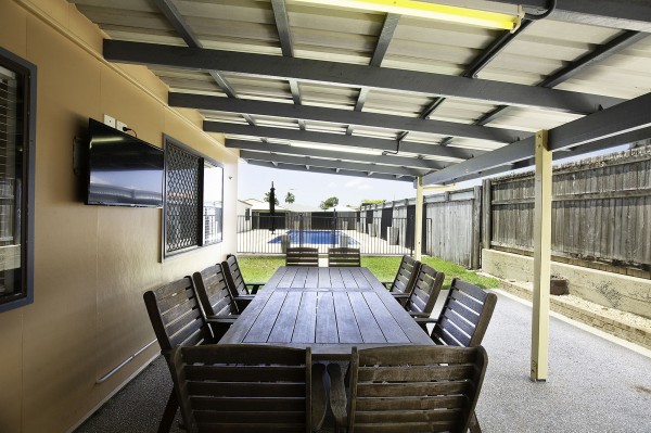 The covered outdoor entertainment area looks out to the extra-large pool allowing you and your family to make the most of our fantastic weather.
