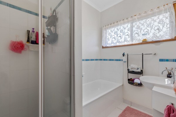 The bathroom is tastefully completed with an easy-access shower, plenty of storage and room to move.