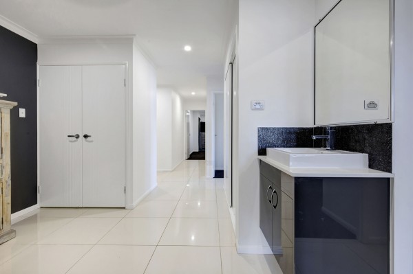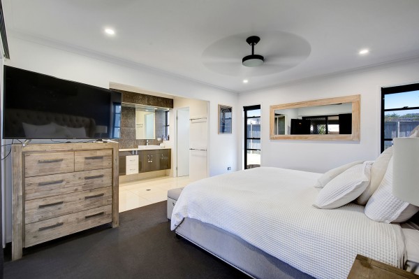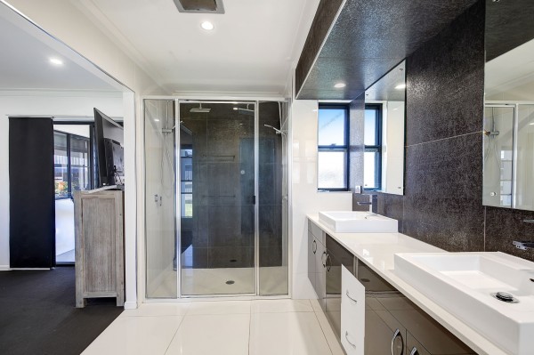 - The main bedroom features an ensuite with double vanity and designer walk in robe