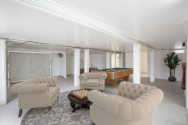 Internal stairs lead to the large enclosed area downstairs, which means people can move between the two levels without being exposed to the weather.