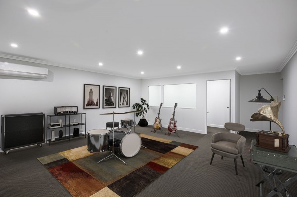 And then there's the music studio: Detached from the house, it is a rendered, air-conditioned room which has been partly soundproofed and contains plenty of power points for electronics or instruments.