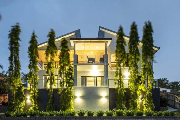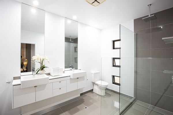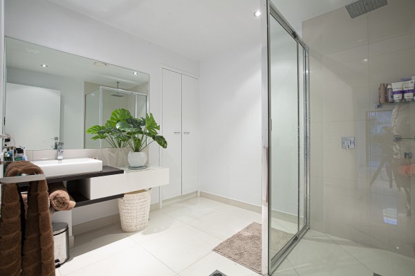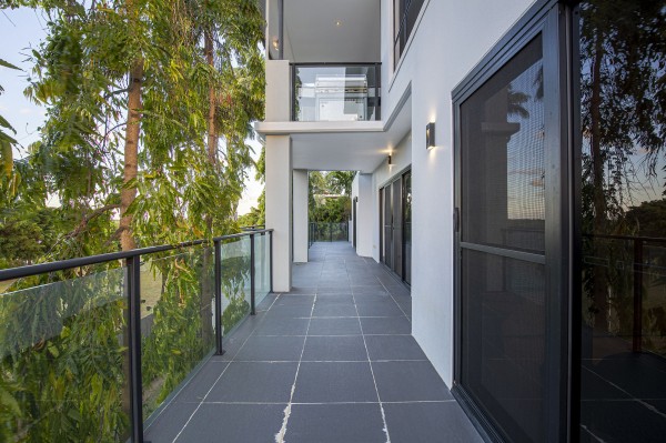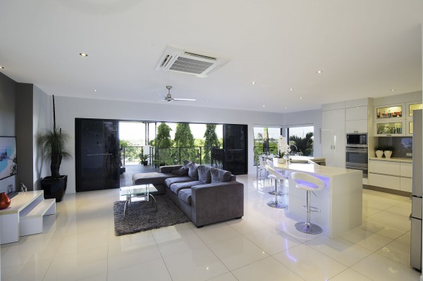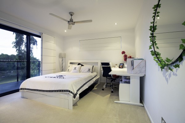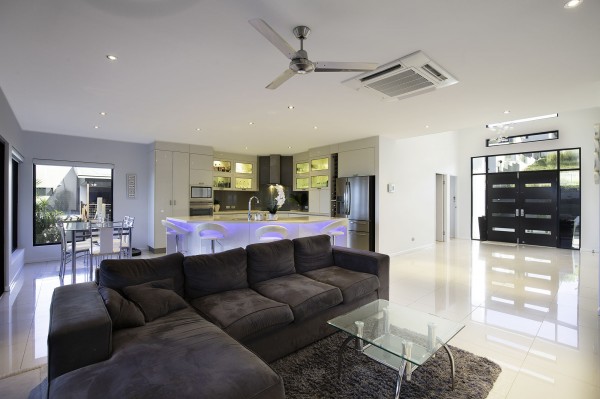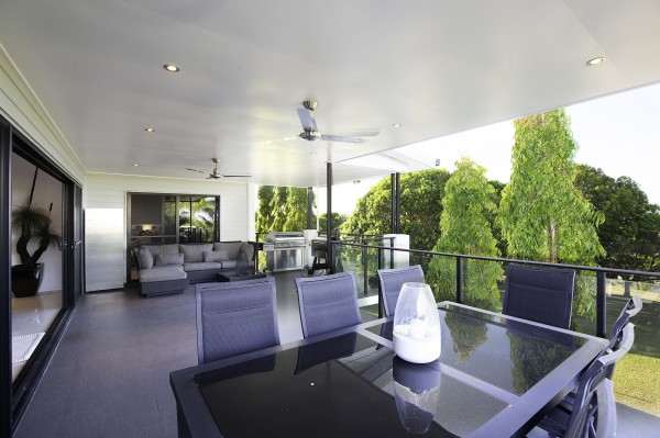 The luxurious theme continues throughout the home with porcelain tiles, stone bench tops, the C-Bus Home Automation System, and a creative use of quality materials.