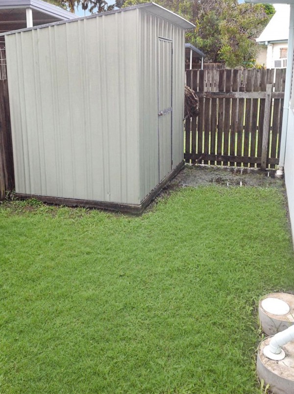 - Fenced courtyard with garden shed.