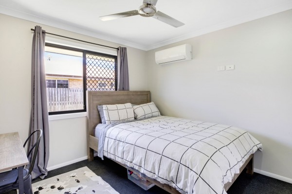 - Three good sized bedrooms, all with built-ins & fans, two with air-con