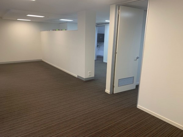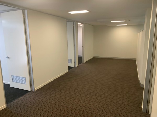 With front and rear access this 129m2* executive office is divided into 5 separate offices supported by a shared kitchenette and secured under covered parking.