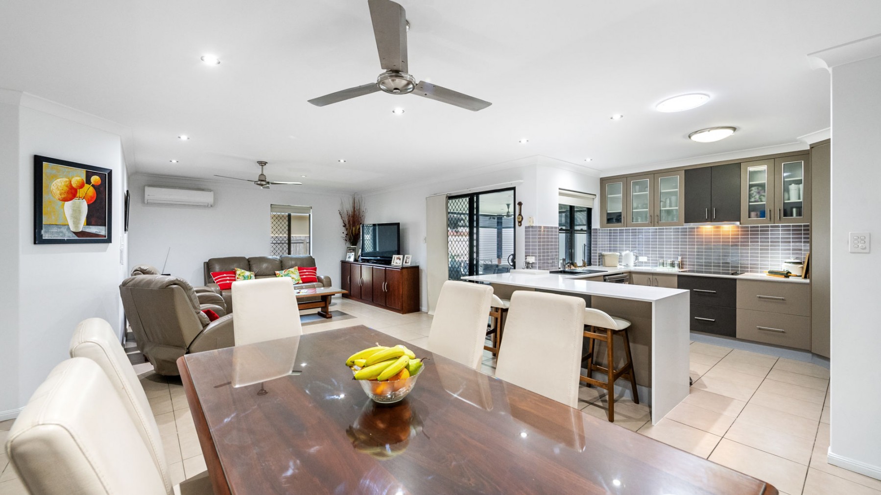 - Open plan living and dining flows into the second living area/ media room