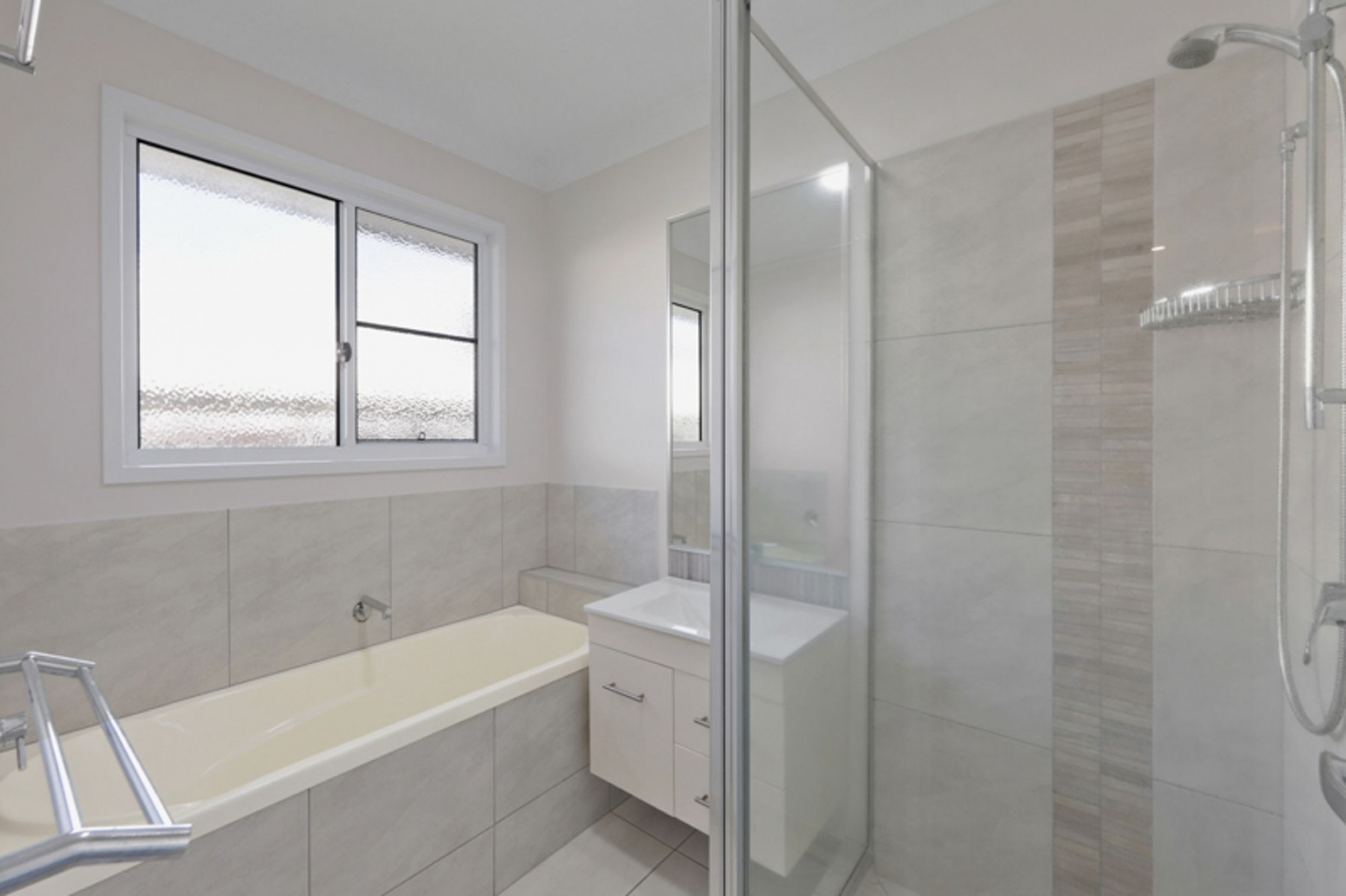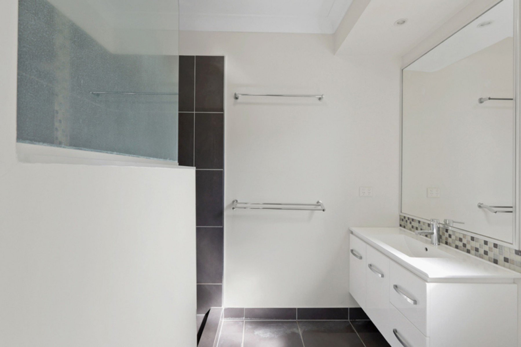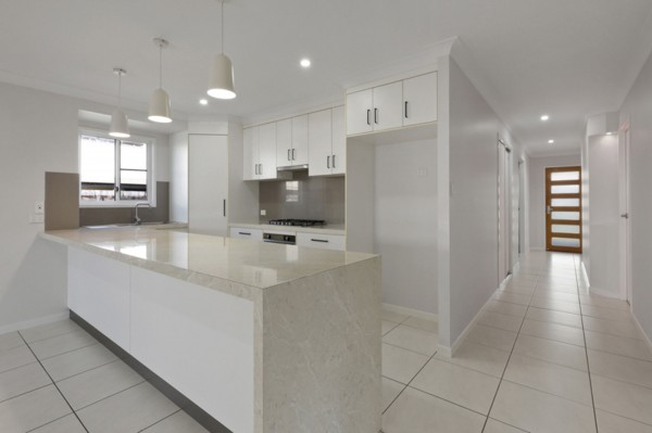 - Marble benchtops with elegant waterfall finish