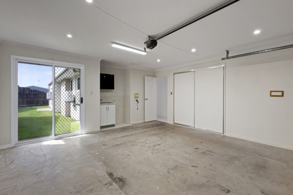 - Double lock-up garage with extensive shelving and cabinetry