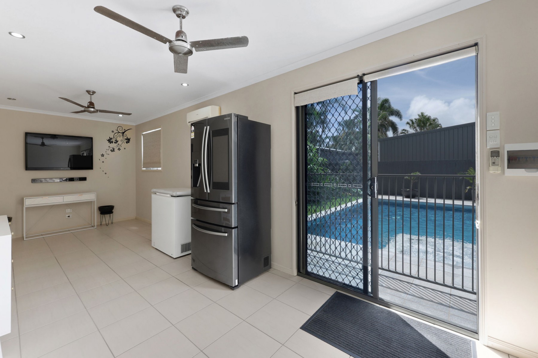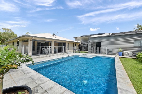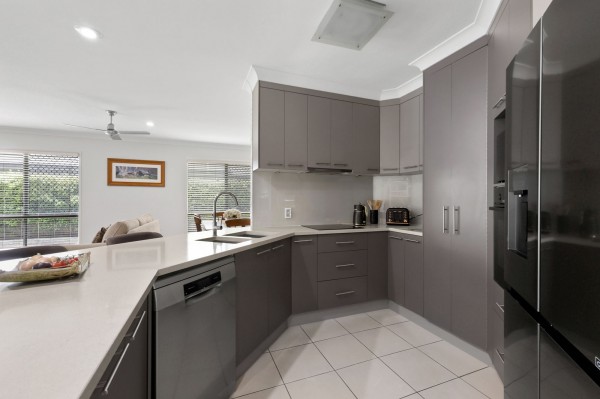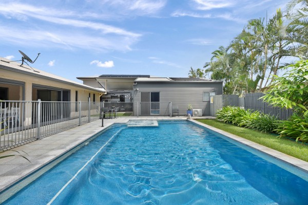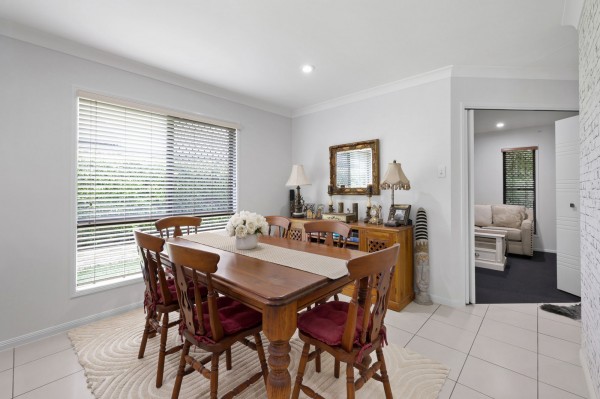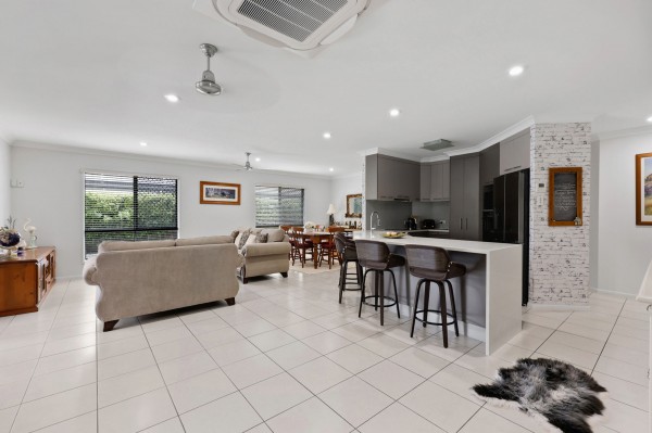 The kitchen, living and dining areas open directly onto a covered rear entertaining space and overlook the stunning resort-style swimming pool, creating a private oasis ideal for family gatherings, weekend barbecues or unwinding at the end of the day.