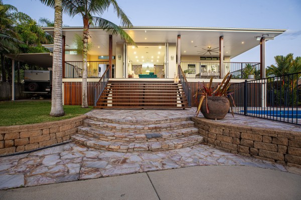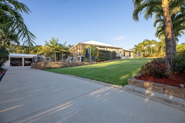 This property is not just about the interior. The manicured gardens surround the home, creating a tranquil oasis where you can unwind and connect with nature. Step outside onto the grand back timber stairs, leading to the high clearance carport and the 3+ bay shed with an additional lean-to storage area. Whether you need extra space for vehicles or a workshop, this property has you covered.