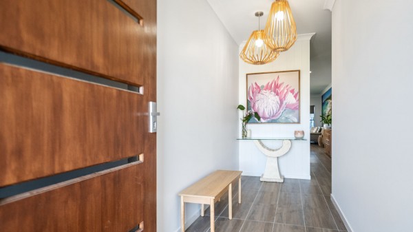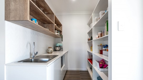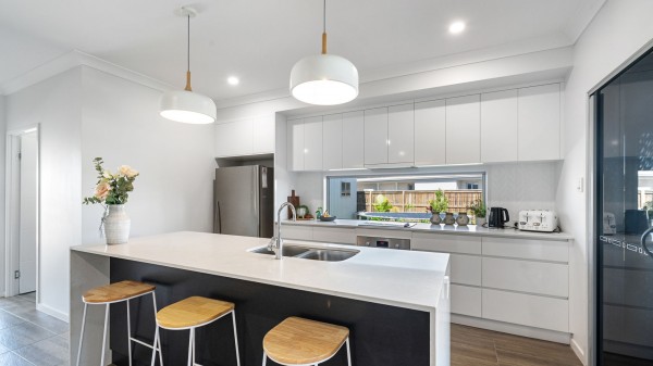 At the heart of the home this stunning kitchen boasts a breakfast bar, high-quality stainless-steel appliances, kitchen window, an island bench and a spacious walk-in butler's pantry, sitting adjacent to the dining area, open-plan living space, and outdoor entertainment area.