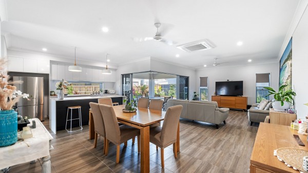 - Open plan living, dining kitchen that flow onto the outdoor patio that overlooks the resort style pool