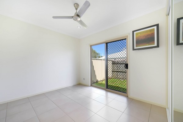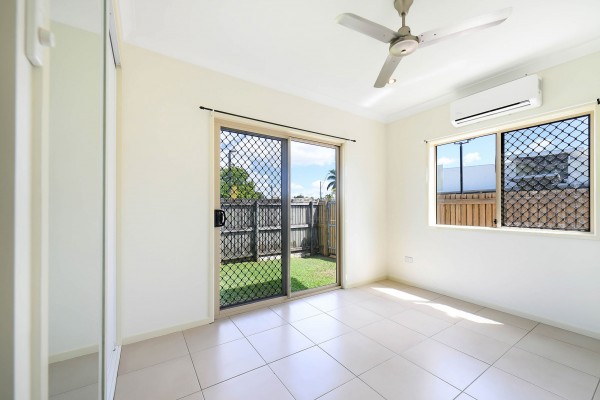 - Two bedrooms, both with air-conditioners, fans and built-in wardrobes. They both have sliding door access out to the rear yard