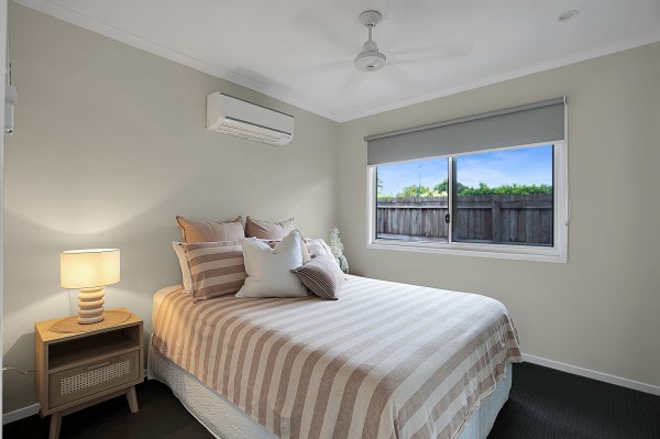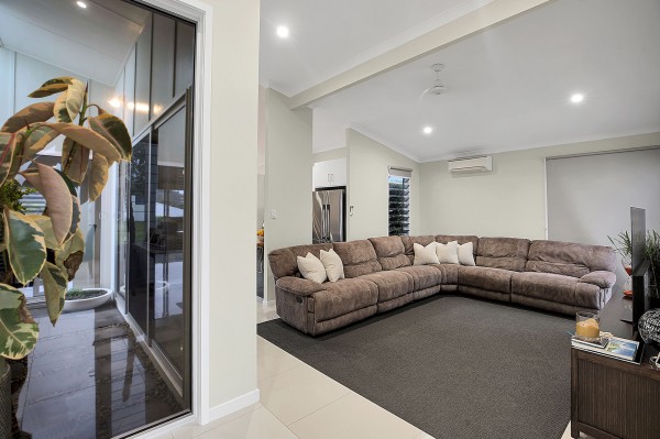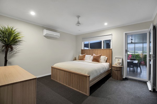 Exemplarily crafted by one of Mackay's reputable local builders, this four-bedroom, two-bathroom house showcases a refined master bedroom boasting an ensuite with a dual shower and double vanity.