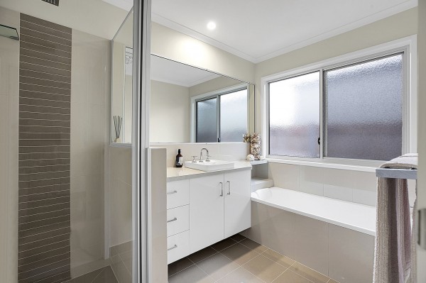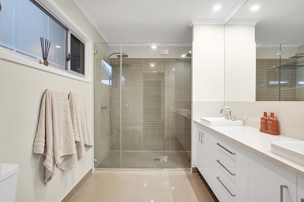 - The generously-sized master bedroom features a walk-in robe and an ensuite with dual showers and a double vanity
