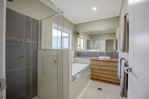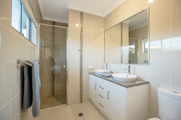 - The primary bedroom boasts an ensuite and a walk-in robe