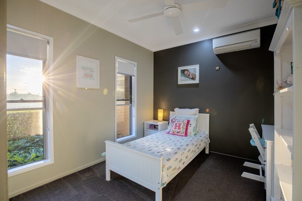- Three additional bedrooms feature plush carpeting, built-in robes, ceiling fans, and air conditioning