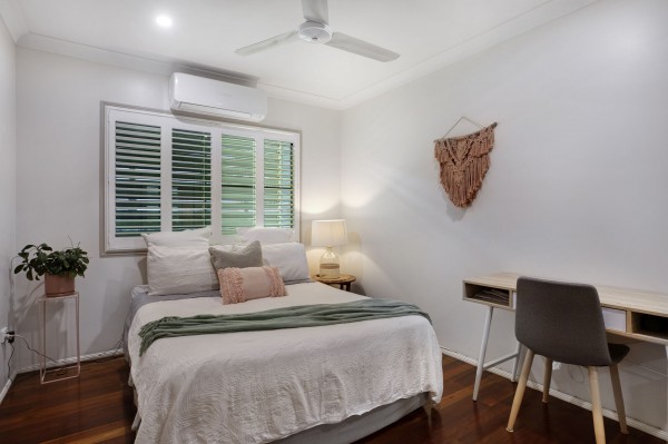 - 2 generously sized bedrooms with built in robes, plantation shutters and air conditioning