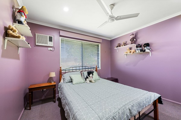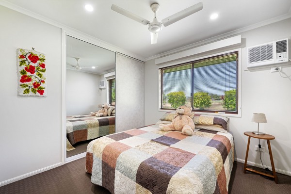 - The master bedroom is oversized, featuring a large three-door built-in wardrobe and air conditioning