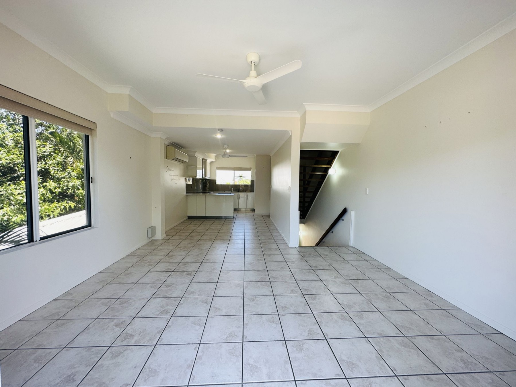 - Tiled open plan living area with air-conditioning, which flows onto the back balcony to enjoy the coastal breeze.