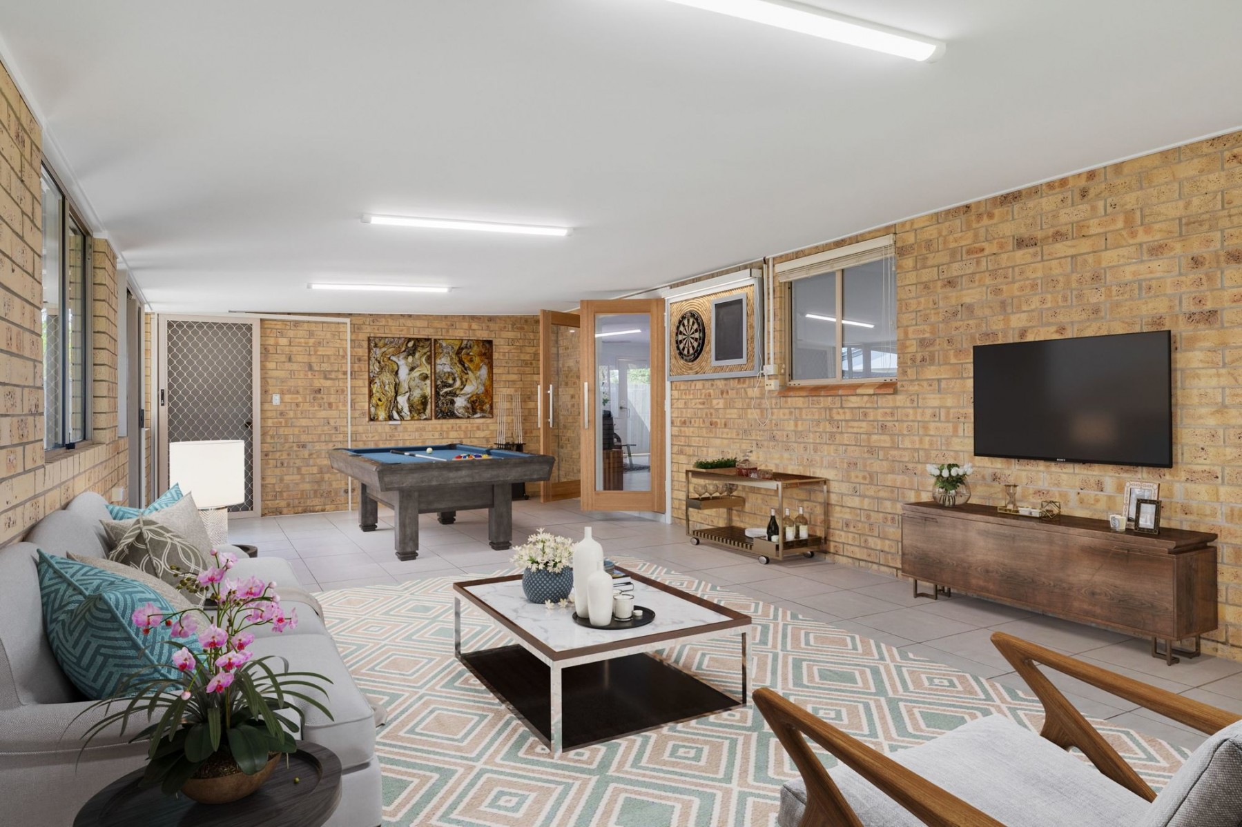 - There is a 2nd living area that is tiled, airconditioned and perfect place for a bar or games room.