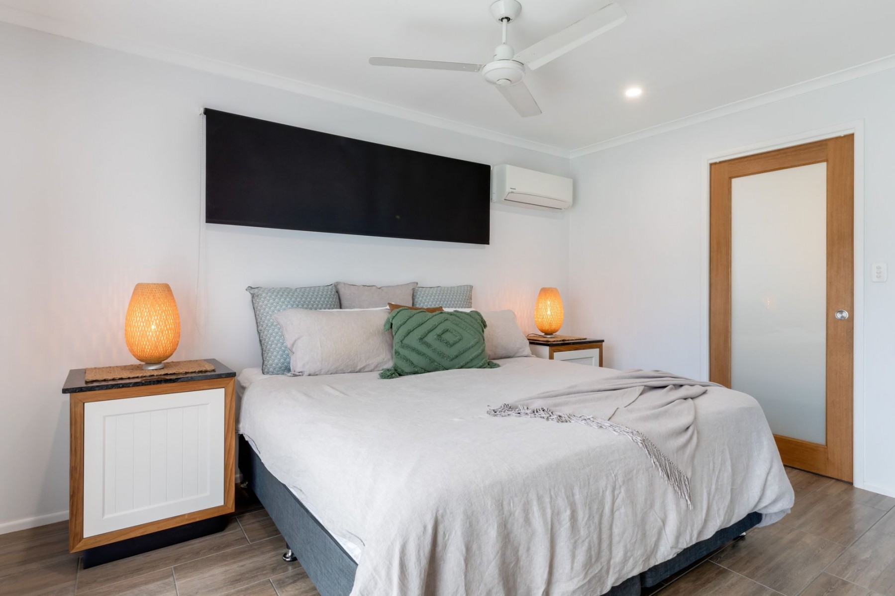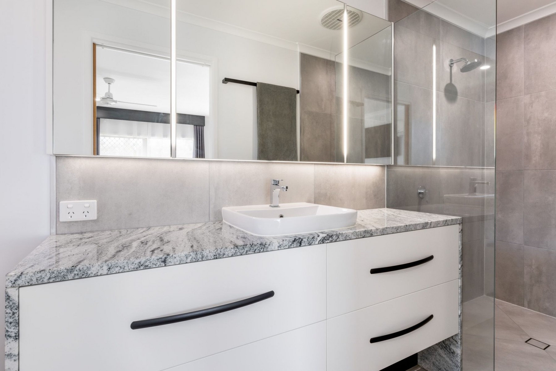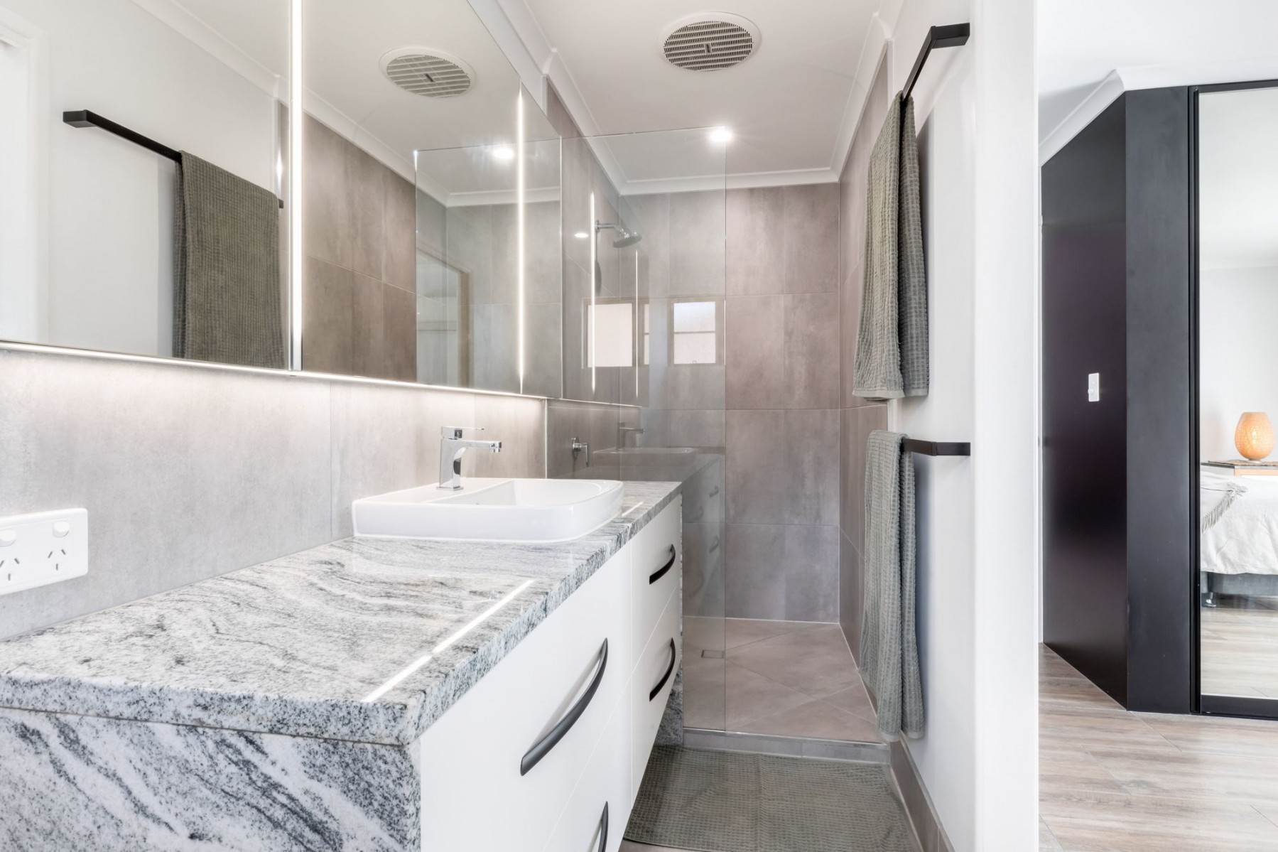 - Double size Master bedroom has split system air-conditioning, amazing tiles, triple size built-in-robes and an incredible ensuite that features LED lighting, stone benches, rain shower and classy tiling.