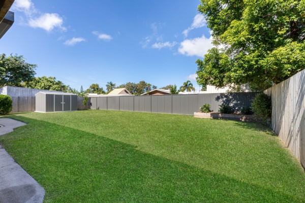 - The backyard is fully fenced with plenty of room for the kids and pets and has a small shed.