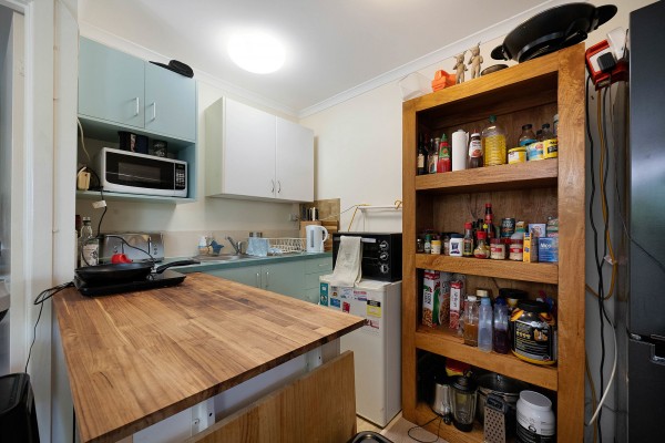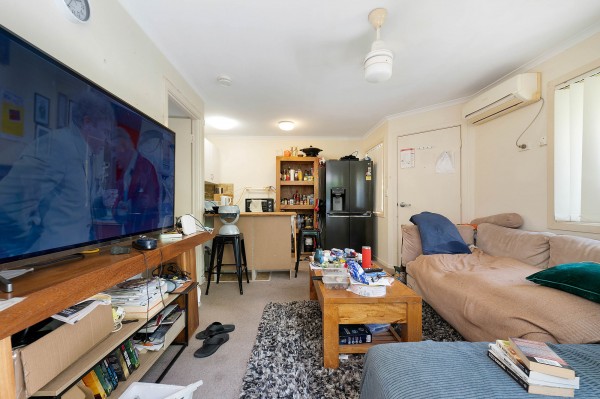 This unit has a good-sized bedroom with built-in wardrobe and an air-conditioned, open plan living and dining area.