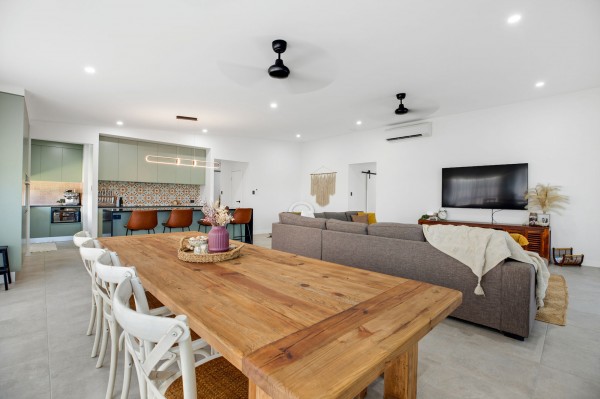 - Many living areas spaced throughout the home including a rumpus room, a formal lounge that has doors added for seclusion, a main open plan living plus a outdoor patio with a built in bbq
