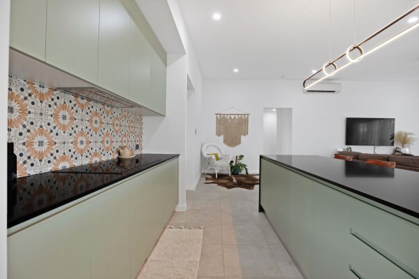 - Large kitchen with stone benchtops, breakfast bar, butler's pantry, quality appliances and a kitchen window panel to let an abundance of natural light in