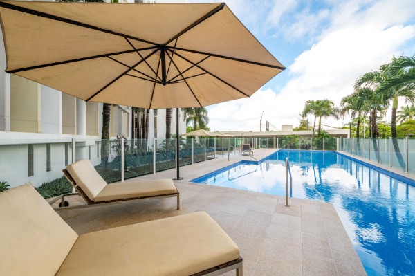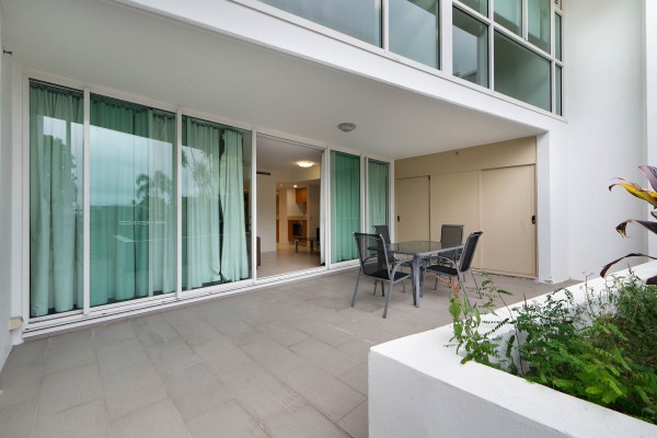 Set in the prestigious Lanai apartment complex, the ground-floor location allows for the living areas to flow beautifully out to a generous outdoor area far bigger than you would expect.