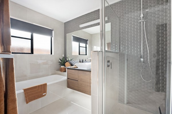 - Separate wing housing three bedrooms, air-conditioning, built-in robes all serviced by a stylish bathroom with floor to ceiling tiles, a built-in bath, separate shower and toilet