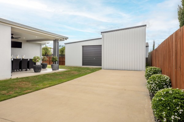 - Fenced allotment with side access, a concrete driveway, and a 2 -bay powered shed with an abundance of storage