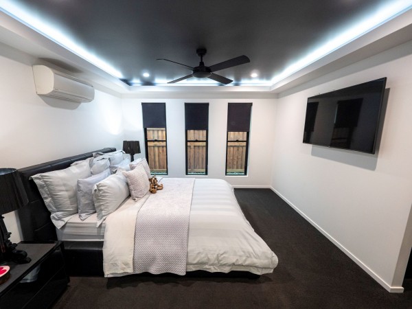 - Media room with blackout curtains and air conditioning