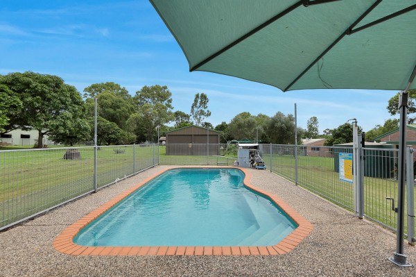 Outdoors, the fully fenced property is a private oasis, featuring a sparkling swimming pool, established fruit trees, and plenty of space for kids and pets to roam. For those who need extra storage or workspace, the property includes a 2-bay shed with power and plumbing, plus an additional large storage shed with a high-clearance carport-ideal for caravans, boats, or larger vehicles.