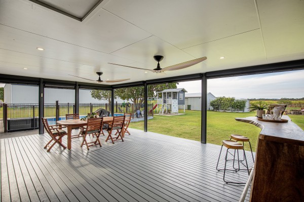 - Spacious entertainment deck overlooking the in-ground swimming pool