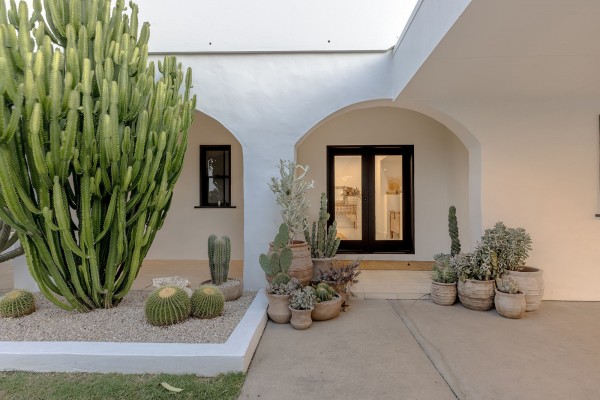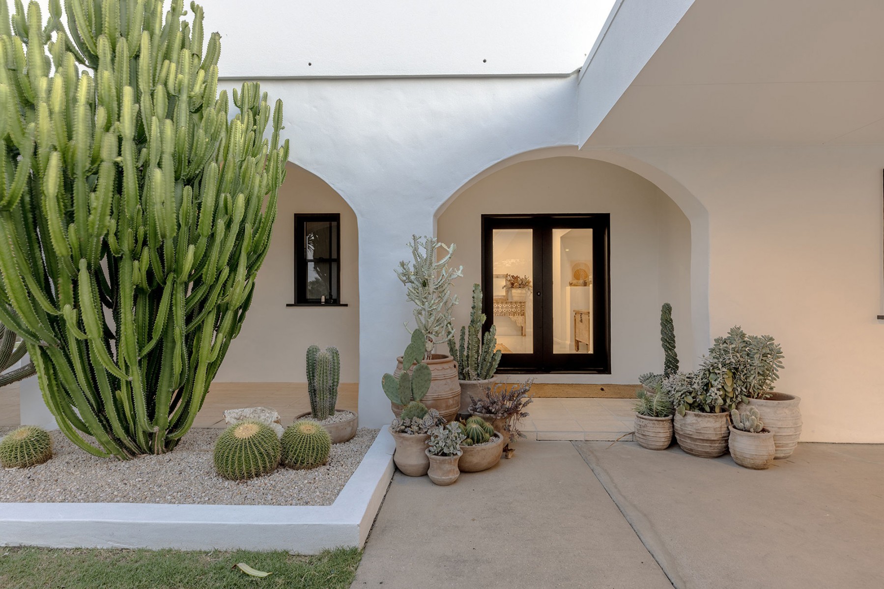 - Striking Mediterranean design with curved architecture and white-rendered exterior