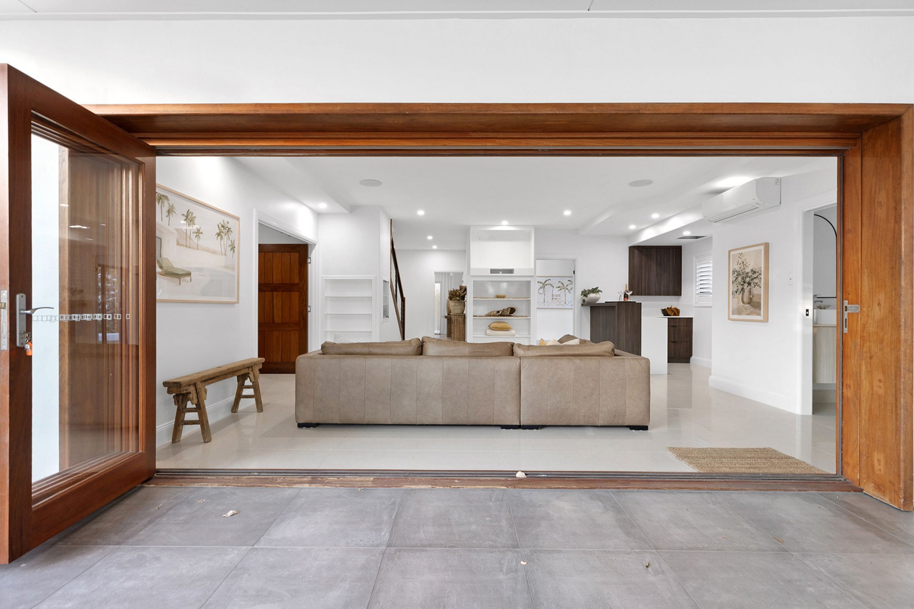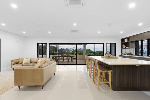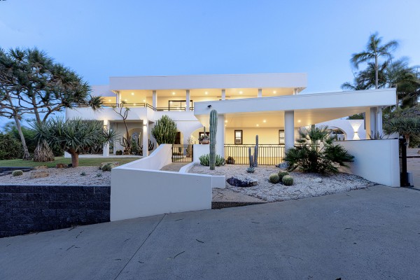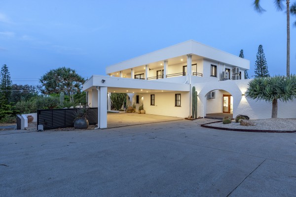 Commanding an elevated position above Lamberts Beach, this Mediterranean-inspired masterpiece defines coastal elegance and resort-style living. Behind its striking white façade framed by pandanus and palms, the home has been thoughtfully transformed with timeless design, luxurious finishes and a relaxed sophistication that perfectly suits its beachside setting.
