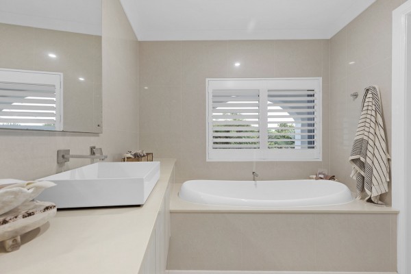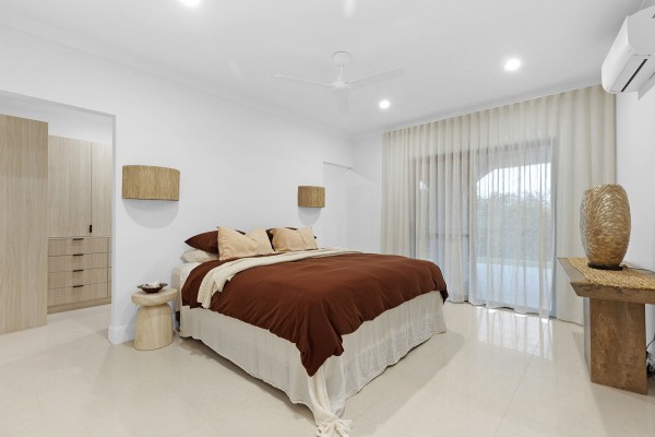 - Ground-floor master retreat with ocean glimpses, walk-in robe, private outdoor patio access and resort-inspired ensuite