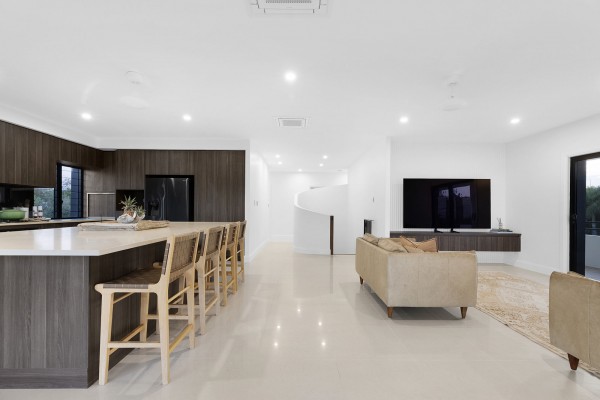 Set across an impressive 2,902sqm, the residence has been designed for entertaining and effortless family living. Expansive interiors flow seamlessly to terraces, lawns and a resort-style pool, creating a lifestyle that feels like a permanent holiday. Every curve, texture and finish has been carefully considered - from the white-rendered walls and stone accents to the coastal landscaping and ambient feature lighting.