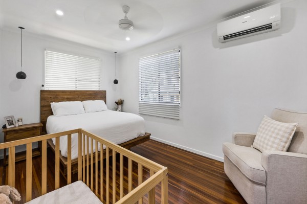 - The main bedroom upstairs features a generous walk-in robe, air conditioning, and stylish pendant lighting.