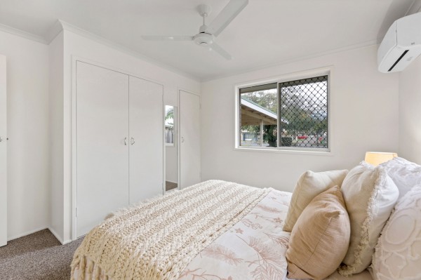 Inside, enjoy modern finishes throughout, air conditioning in the living area and main bedroom, ceiling fans, and built-in robes in both bedrooms. The unit is fitted with security screens throughout for added peace of mind.