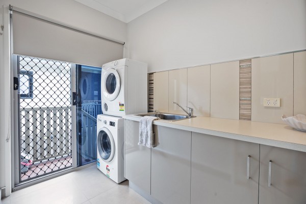 - The well-planned laundry offers great storage and direct access to the backyard and clothesline.