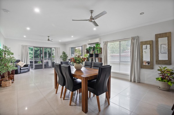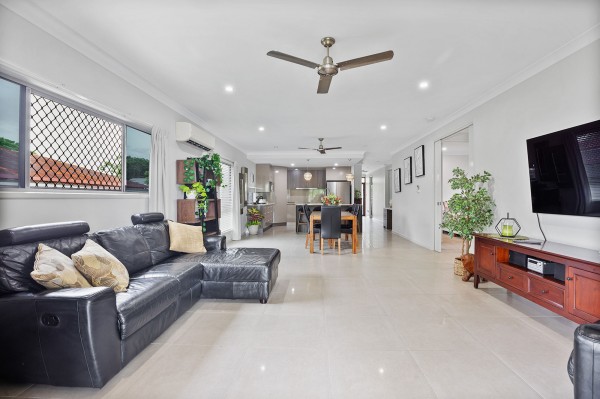 - An open-plan layout connecting the living, dining, and kitchen areas to the rear deck and fully fenced backyard.